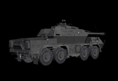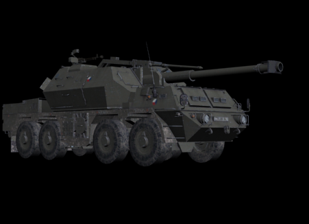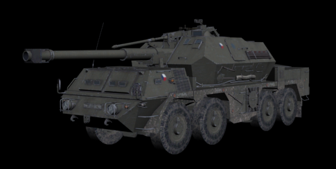 The DANA (D?lo automobiln? nab?jen? automaticky - gun on truck loaded automatically) is a wheeled self-propelled artillery piece. It is also known as the Samohybn? Kan?nov? H?fnica vzor 77 (ShKH vz. 77; self-propelled gun howitzer model 77). It was designed by Kon?trukta Tren??n and built by ZTS Dubnica nad V?hom in the former Czechoslovakia (now Slovakia). Introduced in the 1970s, it was the first wheeled 152 mm self-propelled artillery gun to enter service. It is based on a modified eight-wheel drive (8?8) Tatra 815 chassis with excellent cross-country mobility.