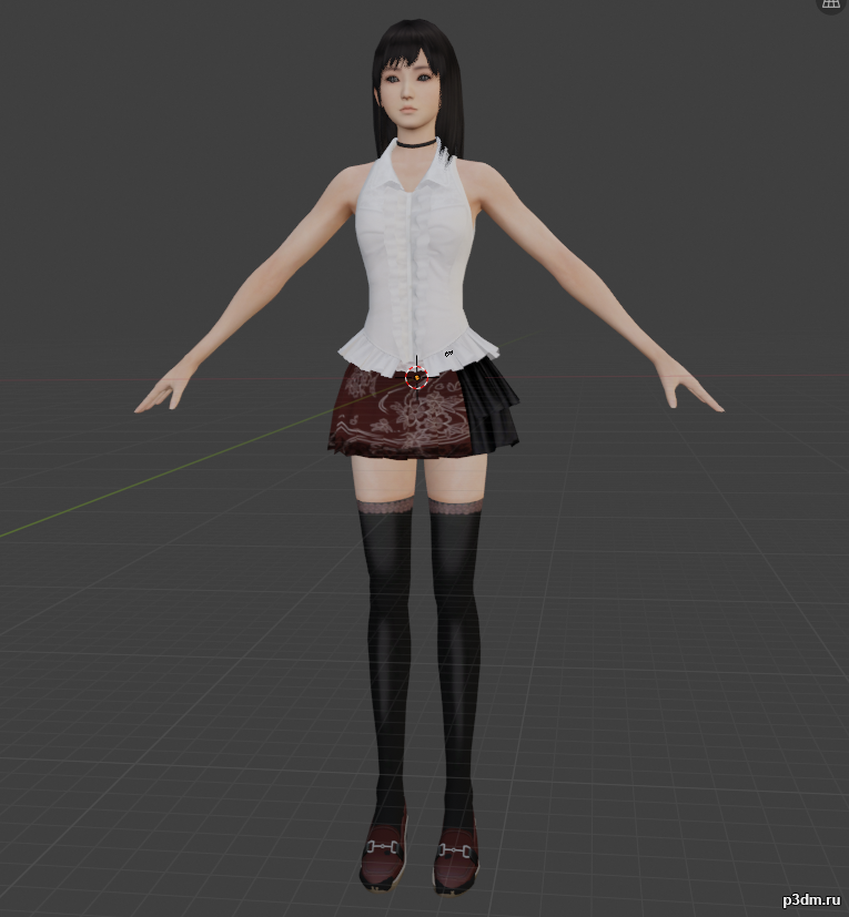 Has Original In game bones and swappable feet for indoor scenes, Blender file is included but i rarely use blender so the normal and spec will have to be applied by you. Weighting on the Hair and skirt is very basic and will need further work.