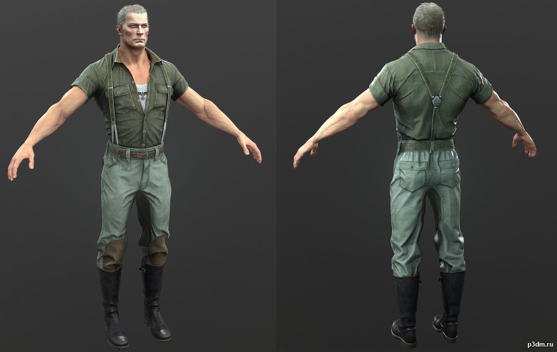 3D модель персонажа из игры "Wolfenstein: The Old Blood".
