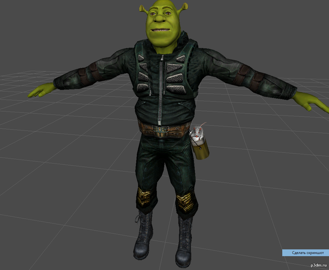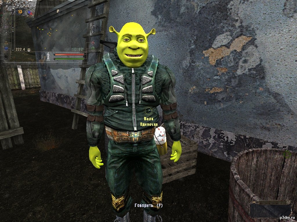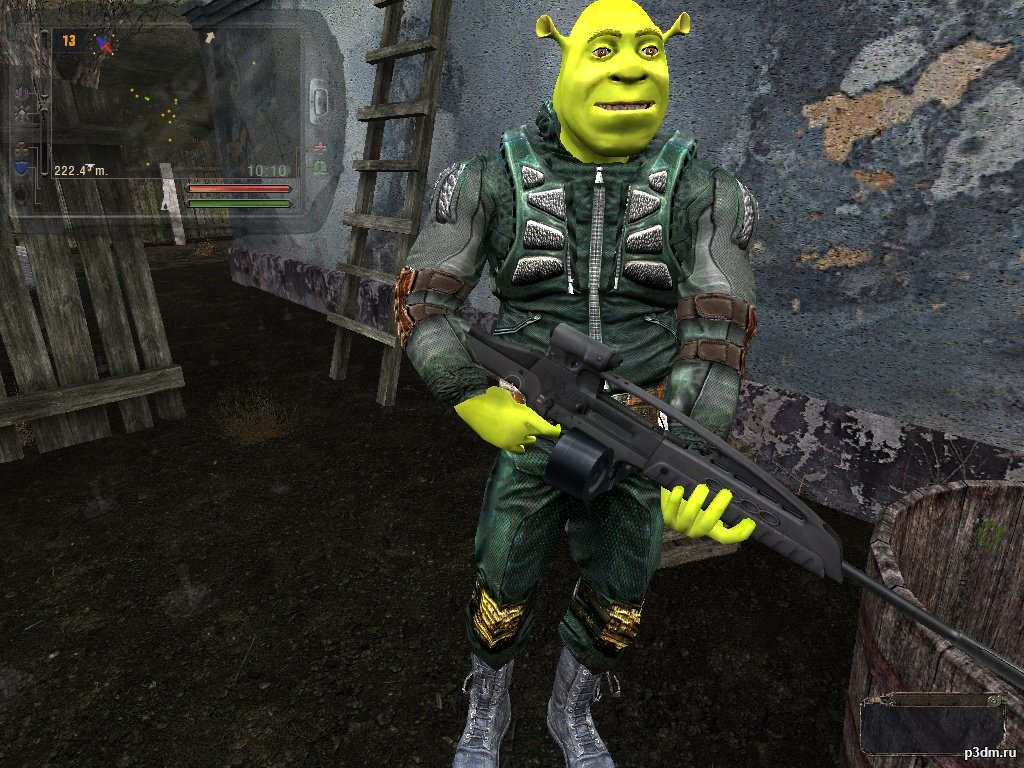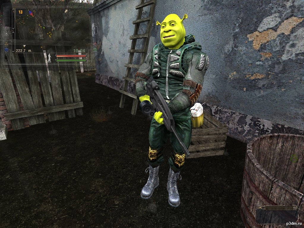 My daughter is 5 years old, she asked me to make a stalker shrek into the game. S.T.A.L.K.E.R. Fully adapted and tested for self-insertion into the game directory. Since the belly is a bit enlarged, I inserted an animation for full NPCs. Using the aref transparency shader created a DDS alpha mask for the rat's pseudo fur. Added bump and thm. (2 side on rat textures and armor) Changed the jumpsuit of the original (texture + unfastened armor)