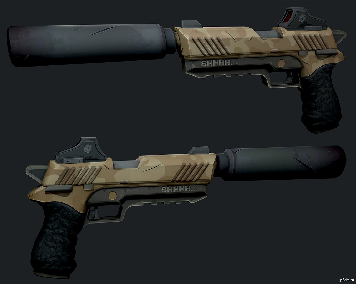 All models are published by users, so p3dm.ru is not responsible for their content. All copyrights belong to the specified owners. If you are the copyright holder of the file "Suppressed Pistol", located on the site p3dm.ru and do not want it to continue to be freely available, then we are ready to assist in the removal of this material. Just write us.Description